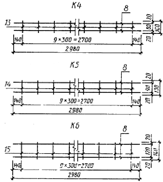 Арматурные каркасы К4, К5 и К6