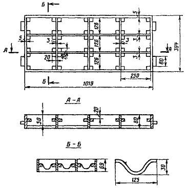 Размеры бетонных блоков принимают согласно рис. 1 настоящего приложения. Изготовление блоков следует организовывать на бетонных заводах или полигонах, находящихся вблизи строящейся дороги. Блоки следует изготовлять в разборной металлической опалубке (см. рис. 2). Бетонную смесь, загруженную в формы, уплотняют на вибростолах. Изготавливать блоки следует по технологии, разрабатываемой строительной организацией, в ведении которой находится завод или полигон.