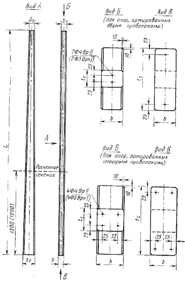 Примечание. Допускается изготавливать опоры поперечным сечением с технологическим уклоном до 15% при условии сохранения размеров расчетного поперечного сечения.