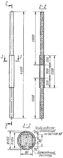 3 - составные (безопасные) постоянного поперечного сечения с использованием в качестве соединительного элемента муфты из асбестоцементной трубы.