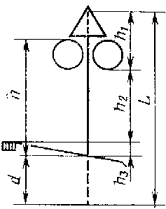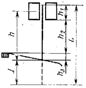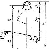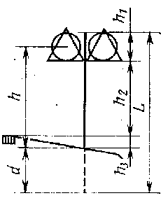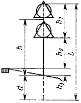 h3 - разница высот между поверхностью кромки проезжей части и места установки опоры, принимаемая равной 0,2 м для одностоечных опор, 0,3 - для двухстоечных и 0,35 м - для трехстоечных;