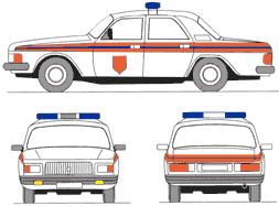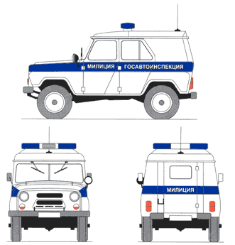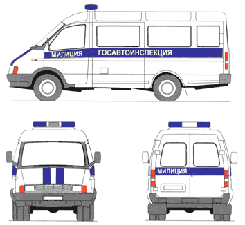 Рисунок А.16. Цветографические схемы транспортных средств милиции и Госавтоинспекции