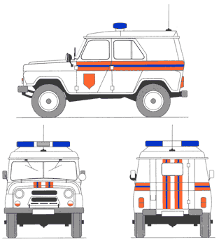 Рисунок А.29. Цветографические схемы автомобилей служб предотвращения и помощи при чрезвычайных ситуациях и гражданской обороны