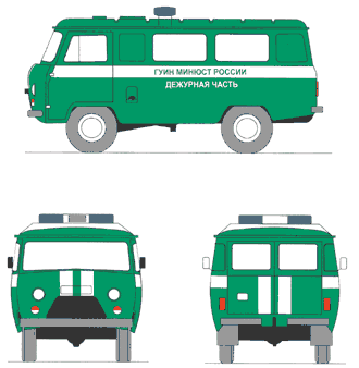 Рисунок А.26. Цветографические схемы автомобилей службы специальных перевозок Гохрана России