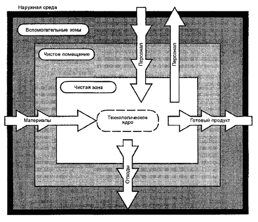- технологические среды и удаление отходов рассматриваются только в связи с их нахождением внутри чистых помещений и перемещениями между ними;