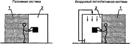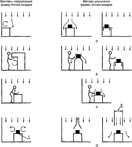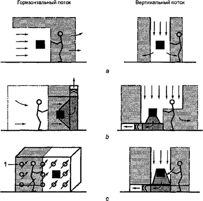 Примечание - Поток воздуха такого типа непосредственно уносит частицы из чистой зоны.