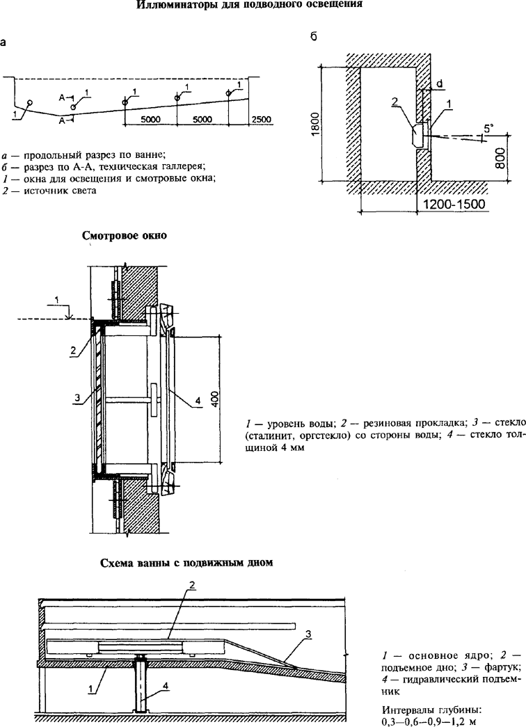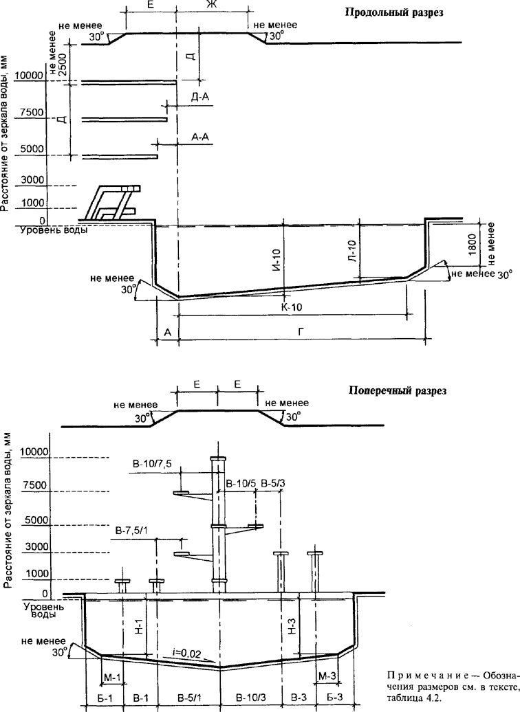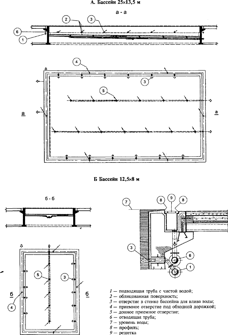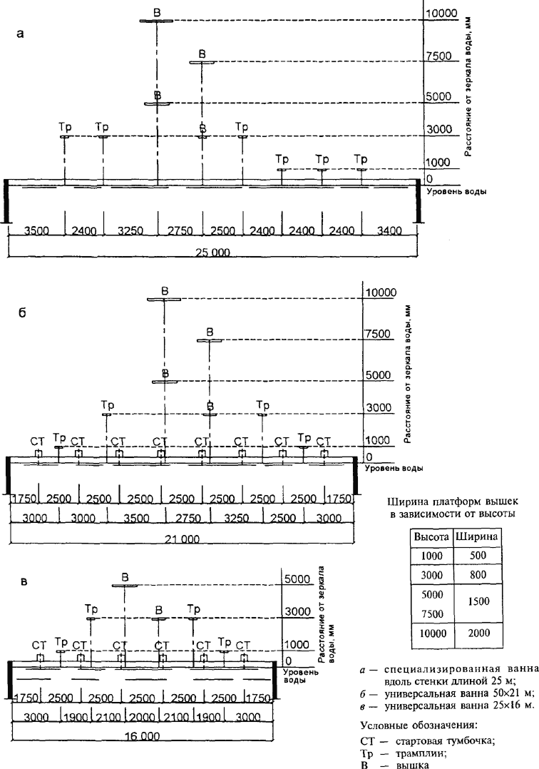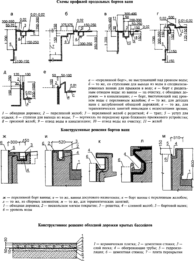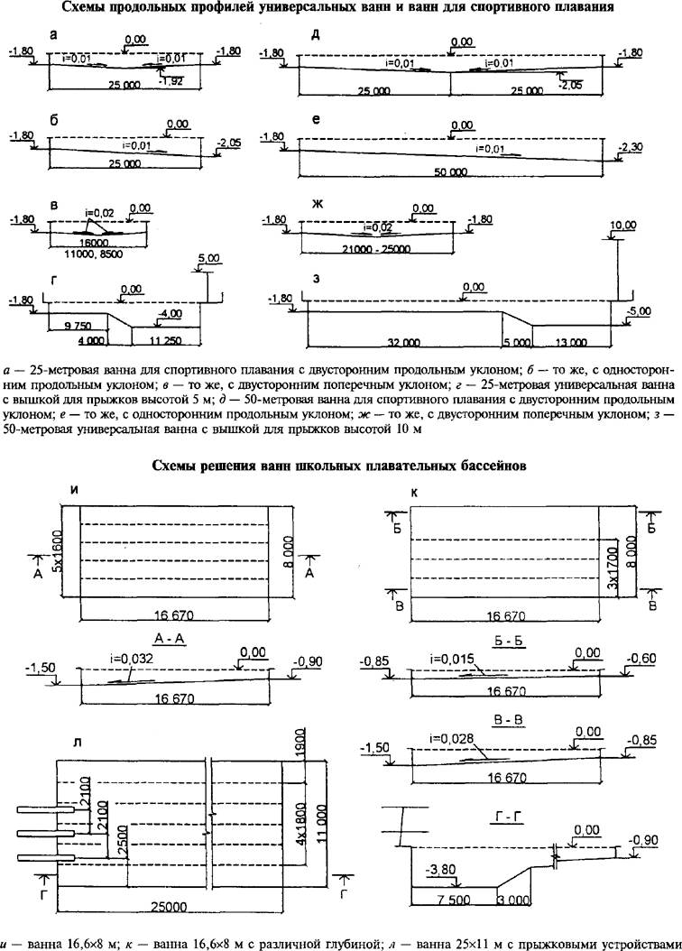 Схемы продольных профилей ванн (для спортивного плавания и универсальных) показаны на рисунке 4.1.