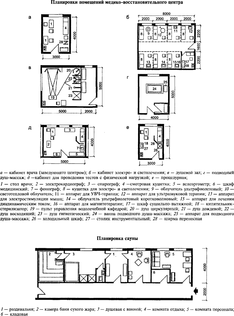 Примеры планов расстановки оборудования помещений медико-восстановительных центров приведены на рисунке 6.1.