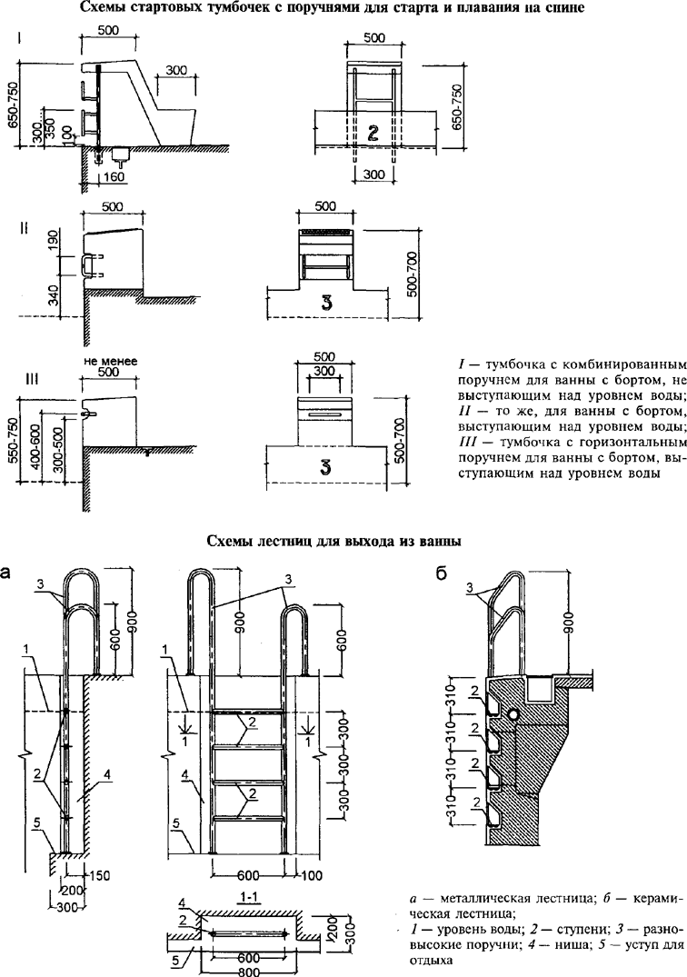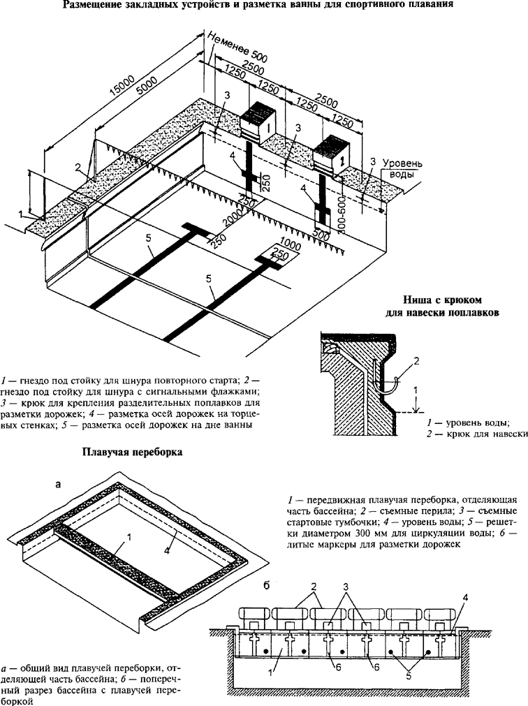 <**> Принимается в демонстрационных бассейнах или при достаточных обоснованиях для удовлетворения потребности в массовом оздоровительном плавании.