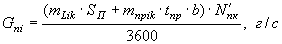 m_xxiк - удельный выброс i-го вещества при работе на холостом ходу двигателя автомобиля к-й группы, г/мин (табл. 2.1 - 2.18);