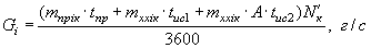 где g_i - удельный выброс загрязняющего вещества, г/с м2 (табл.3.13.1);