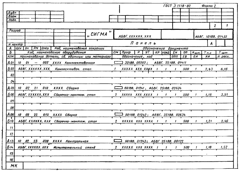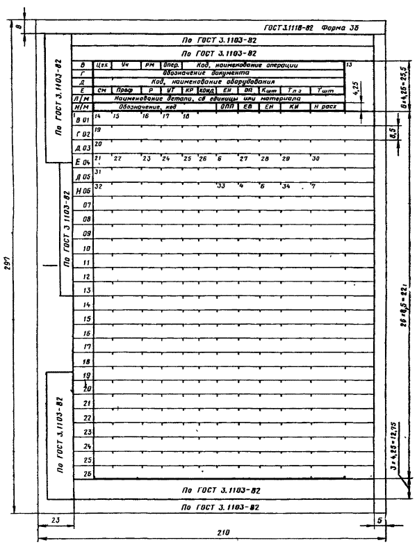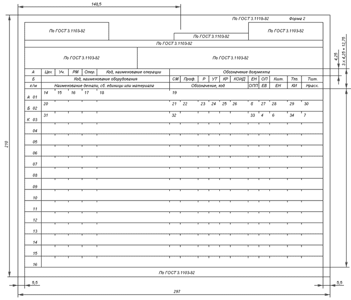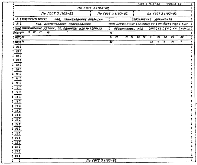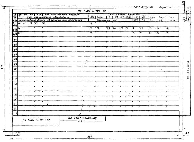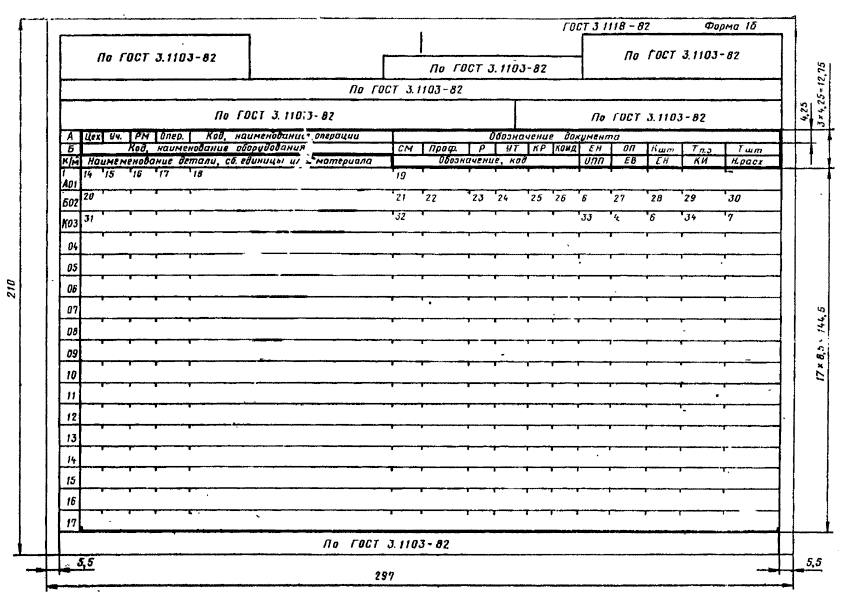 | 18 | 1, 1а, 1б, 2 | Код, наименование операции | А | 75,4 | 29 (28) |