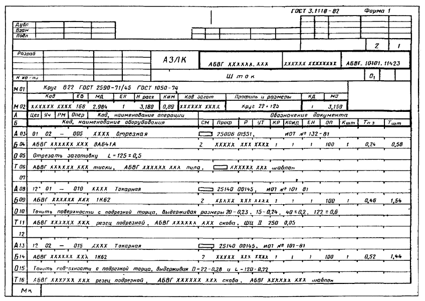| Единичные технологические процессы, выполняемые с применением различных методов обработки | Маршрутное | 1, 5 | М01, М02, А, Б, О, Т |