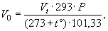 t°- температура воздуха во время пробы, °С: (101,33 кПа = 760 мм рт. ст.)