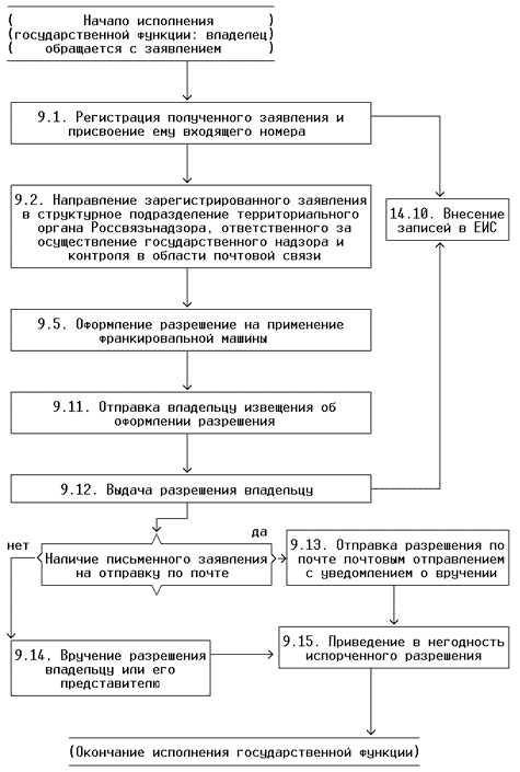место размещения на Сайте блок-схем последовательности действий при исполнении государственной функции по выдаче разрешений на применение франкировальных машин (приложение N 1) и информации о выданных разрешениях.
