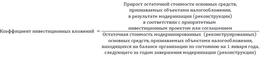 организациями, реализующими инвестиционные проекты, включенные в Перечень приоритетных инвестиционных проектов в соответствии с пунктом 3 части 1 статьи 5 закона области N 3046-ОЗ, - в отношении признаваемых объектами налогообложения основных средств, находящихся на балансе организации, по которым согласно инвестиционному соглашению осуществлена модернизация (реконструкция) с коэффициентом инвестиционных вложений от 0,6 до 0,9; (в ред. Закона Вологодской области от 27.04.2022 N 5101-ОЗ)