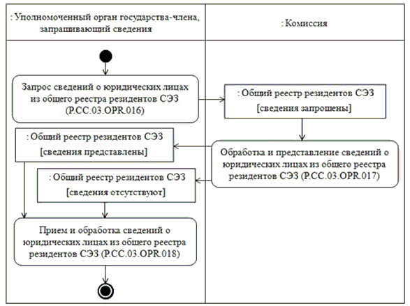 19. Приведенное описание группы процедур представления уполномоченным органам государств-членов, запрашивающим сведения, сведений о юридических лицах, содержащихся в общем реестре резидентов СЭЗ, представлено на рисунке 3.