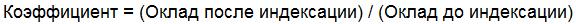 Выплаты индексируются на коэффициент, который рассчитывается по следующей формуле: