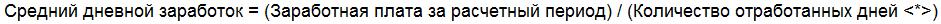 Средний дневной заработок для оплаты отпуска, предоставляемого в рабочих днях, исчисляется по следующей формуле (в том числе при работе на условиях неполного рабочего времени):