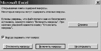При получении файлов от подведомственных организаций желательно Отключать макросы.