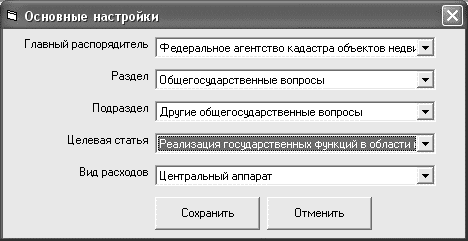 После этого в форме "Основные настройки" выберите соответствующие учреждению коды бюджетной классификации.