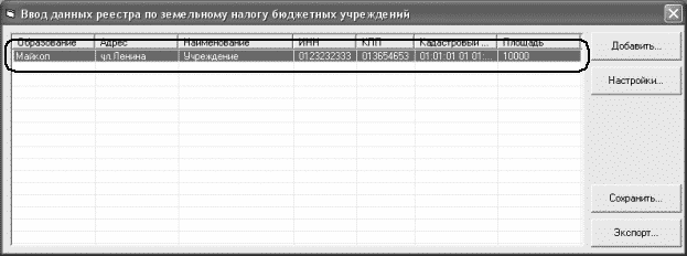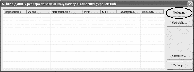 Для ввода информации о земельных участках, находящихся в ведении учреждения нажмите кнопку "Добавить"