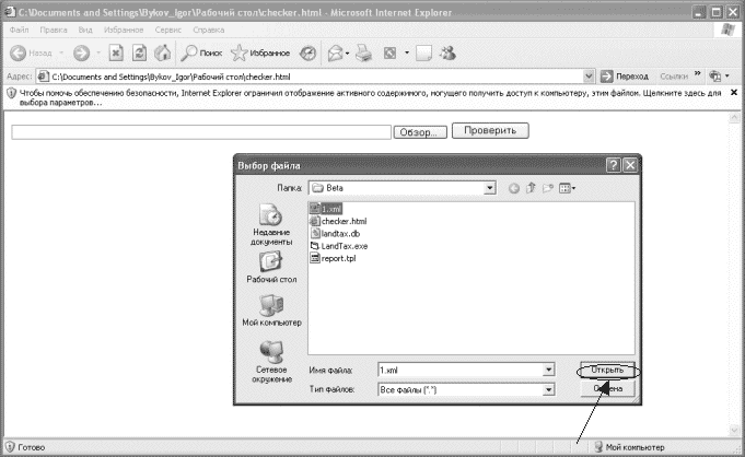 Для просмотра файла с расширением .xml , необходимо нажать кнопку "обзор" и выбрать ранее созданный файл, например: