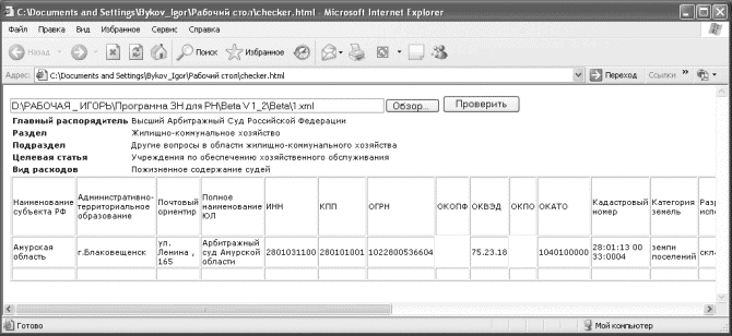 Программный продукт "checker.html" предназначен для просмотра файлов формата .xml в целях сравнения представленной информации на бумажном носителе (форма Приложение 2) с информацией представленной в .xml файле.