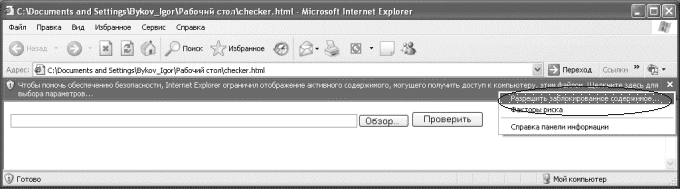 При запуске программы checker.html появляется следующее окно: